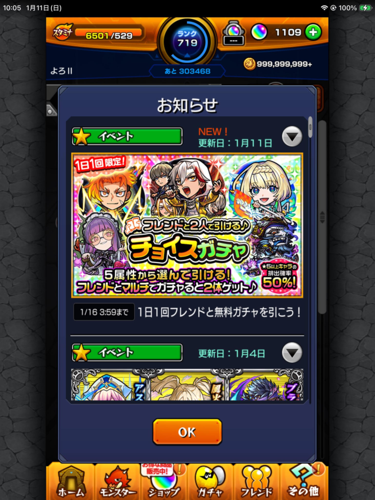 正直自分だけで問題なく5日間、フルにチョイスガチャの恩恵を得ることができます