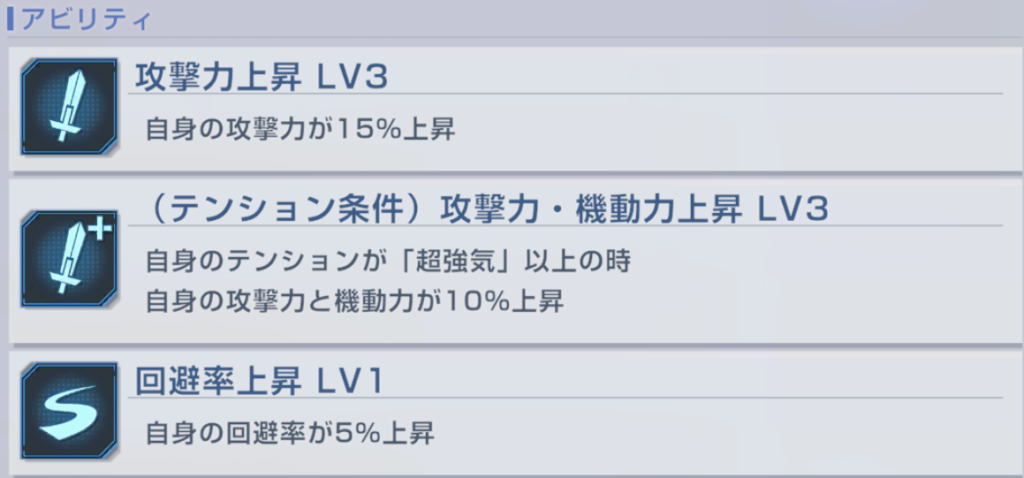 テンション超強気以上にすることで自身の攻撃力(と機動力)が10%アップ