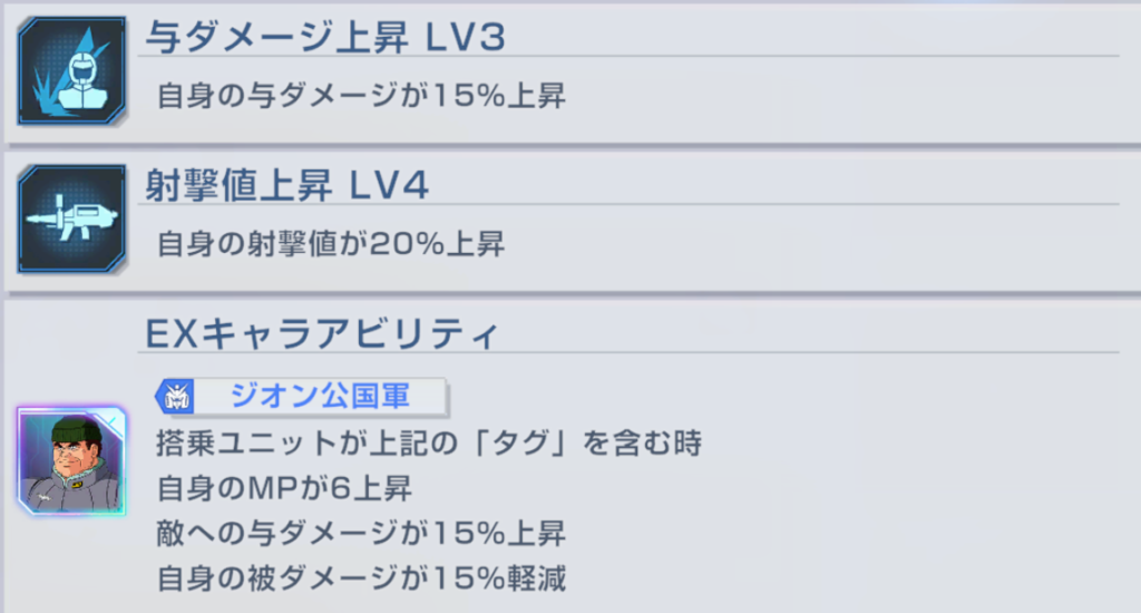・【ジオン公国軍】タグのユニットに搭乗時、開幕MP6スタート