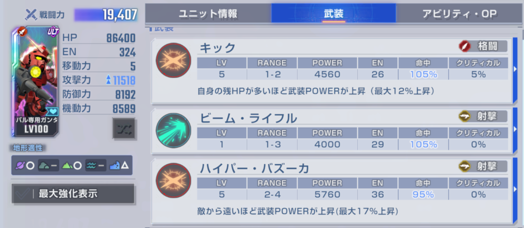 恒常ユニットと考えたら十分すぎる火力を武装をお持ちでございますな