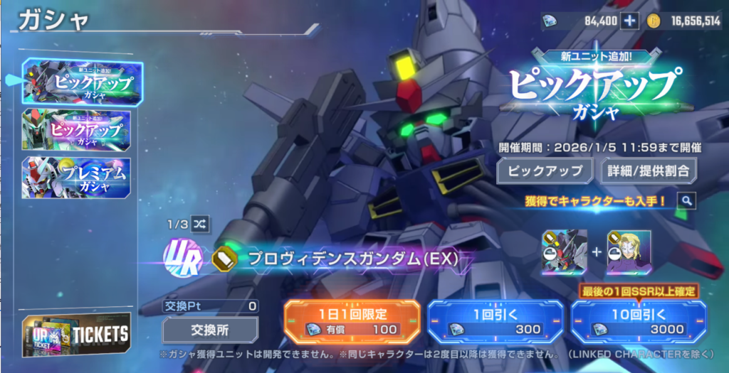 まずはURプロヴィデンスガンダム、タイプは支援型