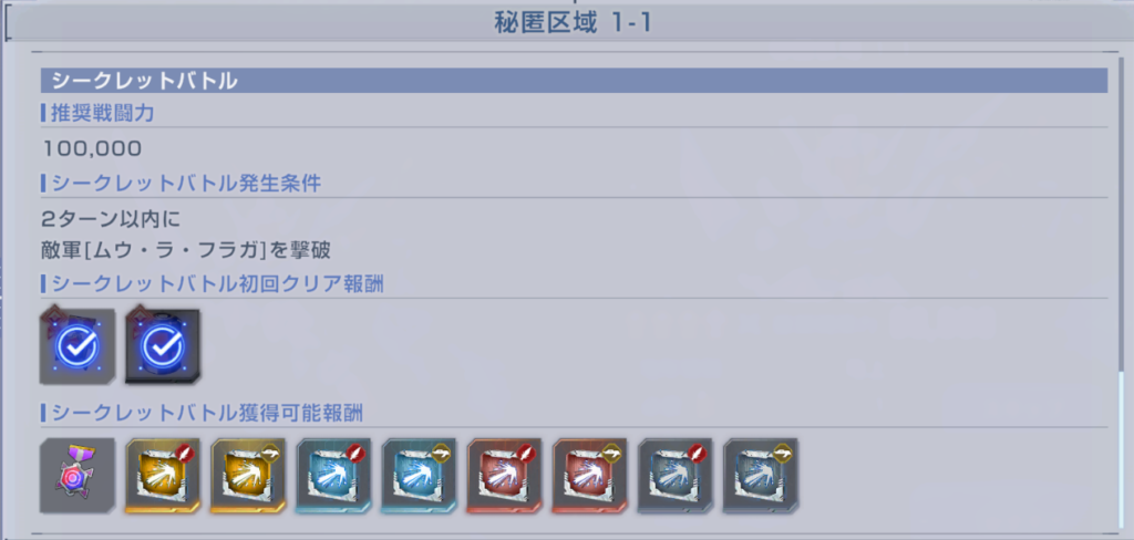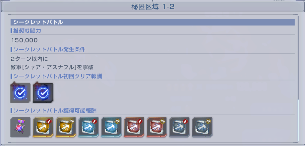 シークレットボスのシークレットバトルの推奨戦闘力は右側が150000、左側が100000となっております