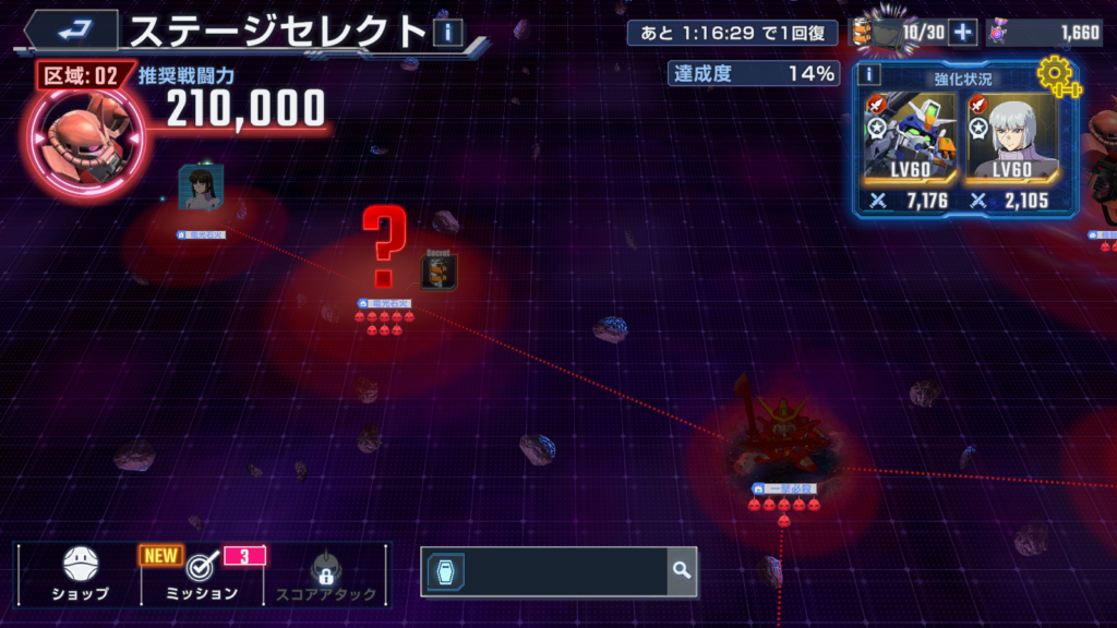 後はPPが溜まったらマップ上の交信基地やらアイテム、未クリアのステージを攻略していき達成度を上げていきます