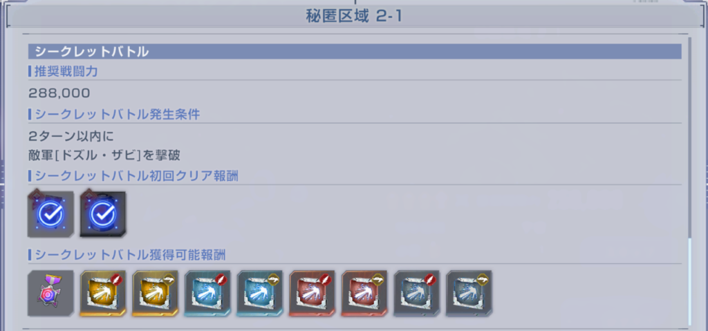 左側のシークレットボスのシークレットバトルは戦闘力が288000