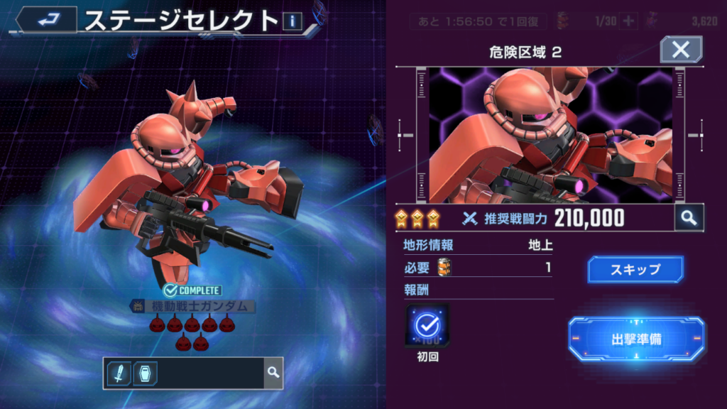 ボスの防御力を50%ダウンできるディアッカのステージは調査区域3のエリアボスの左側、出撃制限は一撃必殺となっております