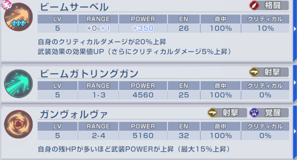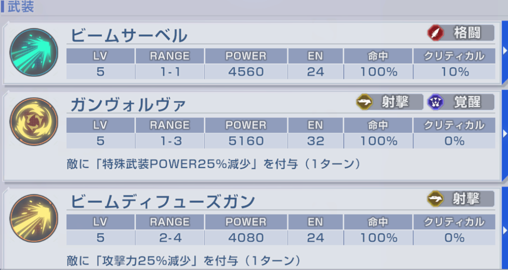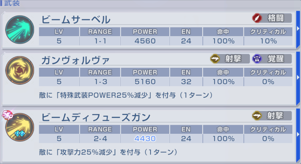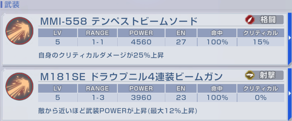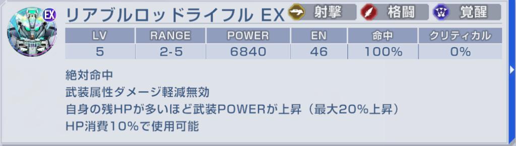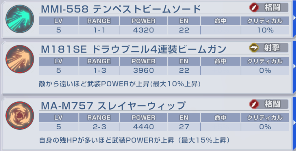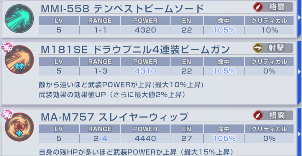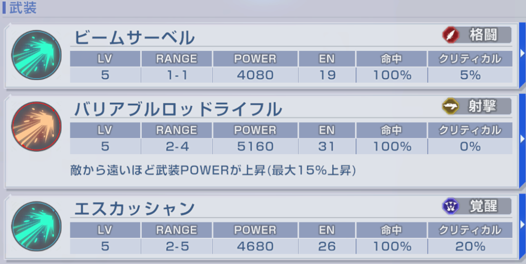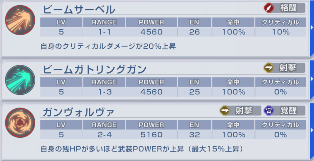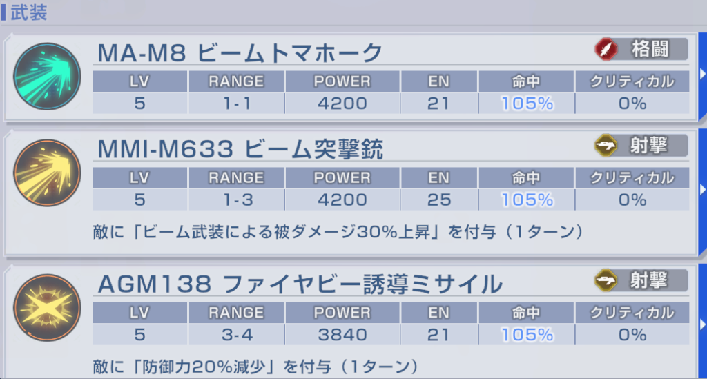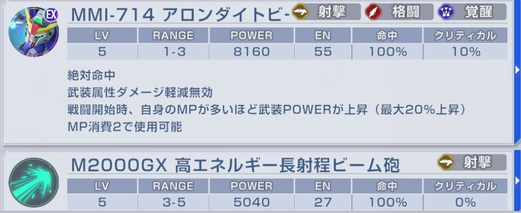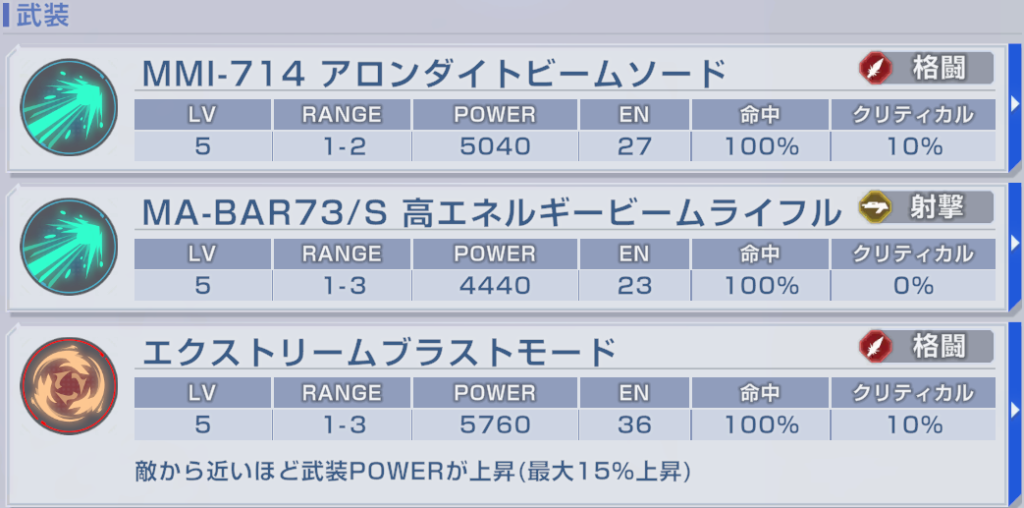 またEX武装だけでなく他の武装もほとんどが射程1をカバーできないので近距離戦が苦手