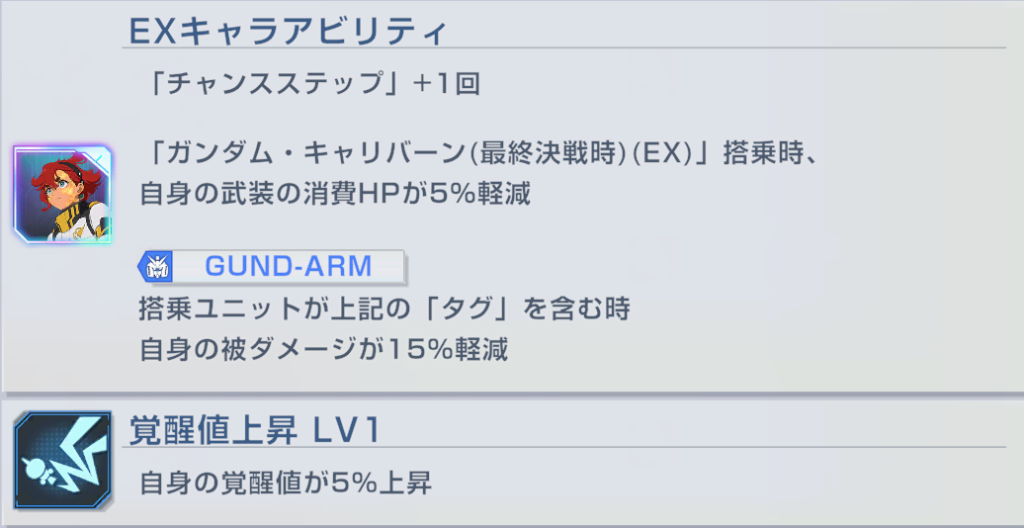 【GUND-ARM】のタグ持ちユニットに搭乗時、自身の被ダメ15%軽減