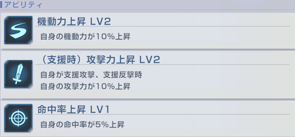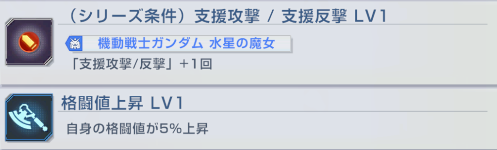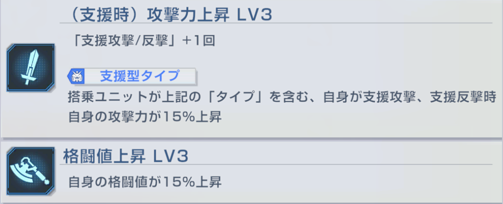 支援型ユニットに搭乗時、支援攻撃/反撃時の自身の攻撃力15%アップ