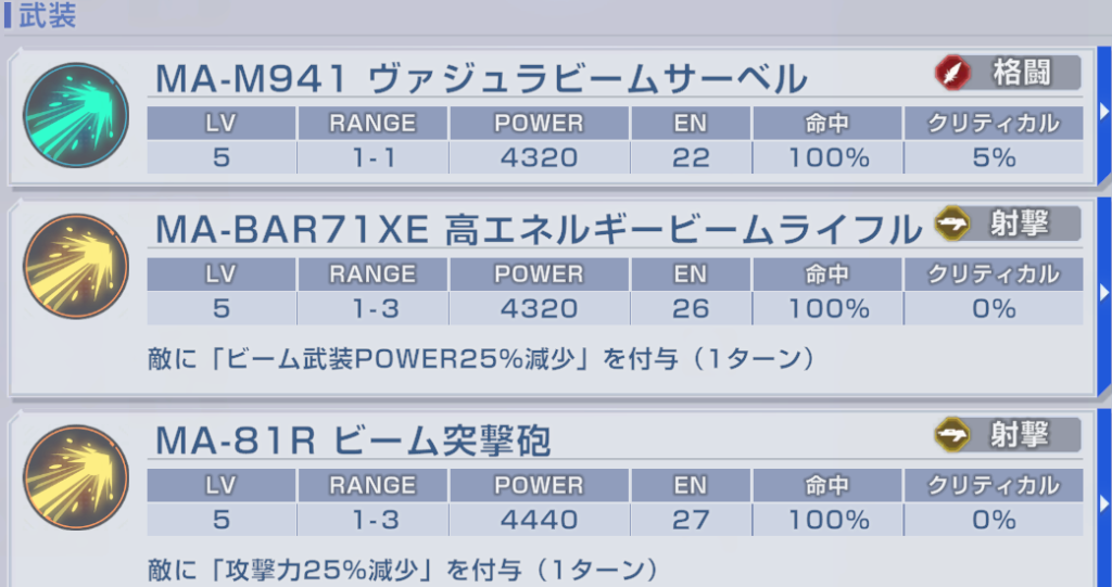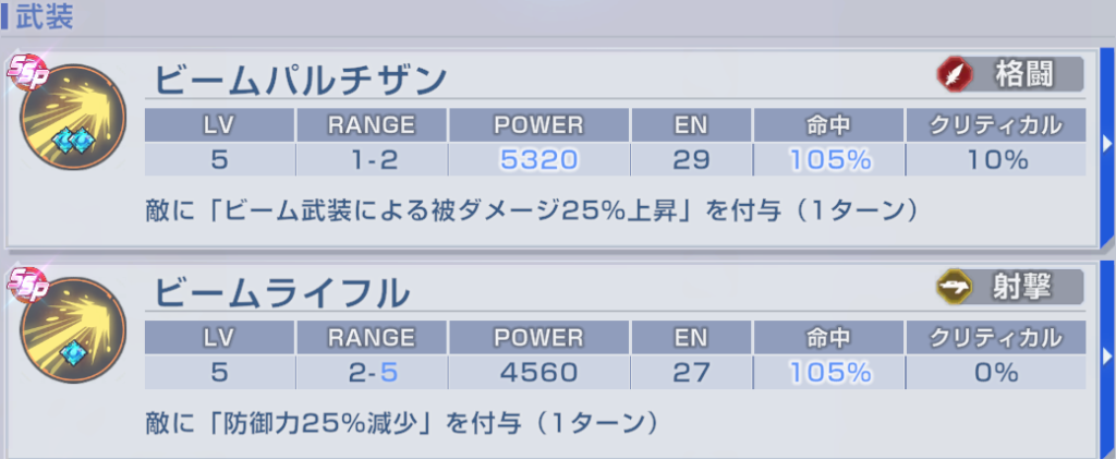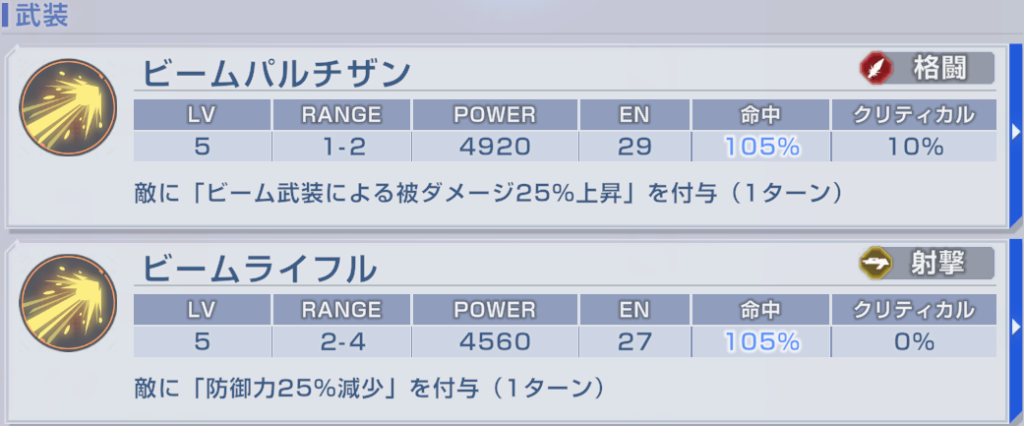 ・敵のビーム武装に対して自身の被ダメ40%軽減