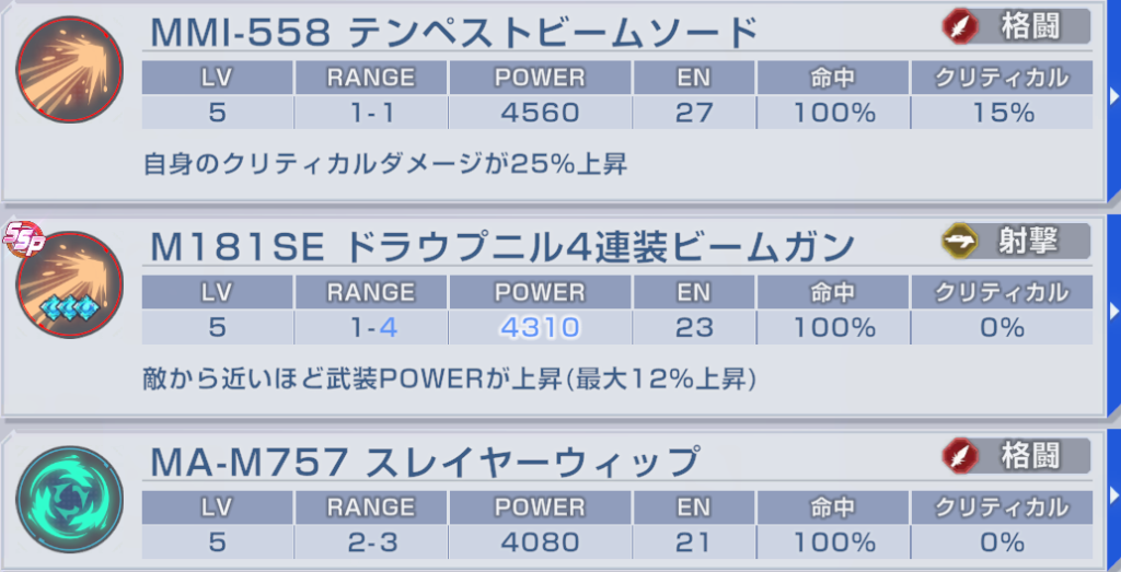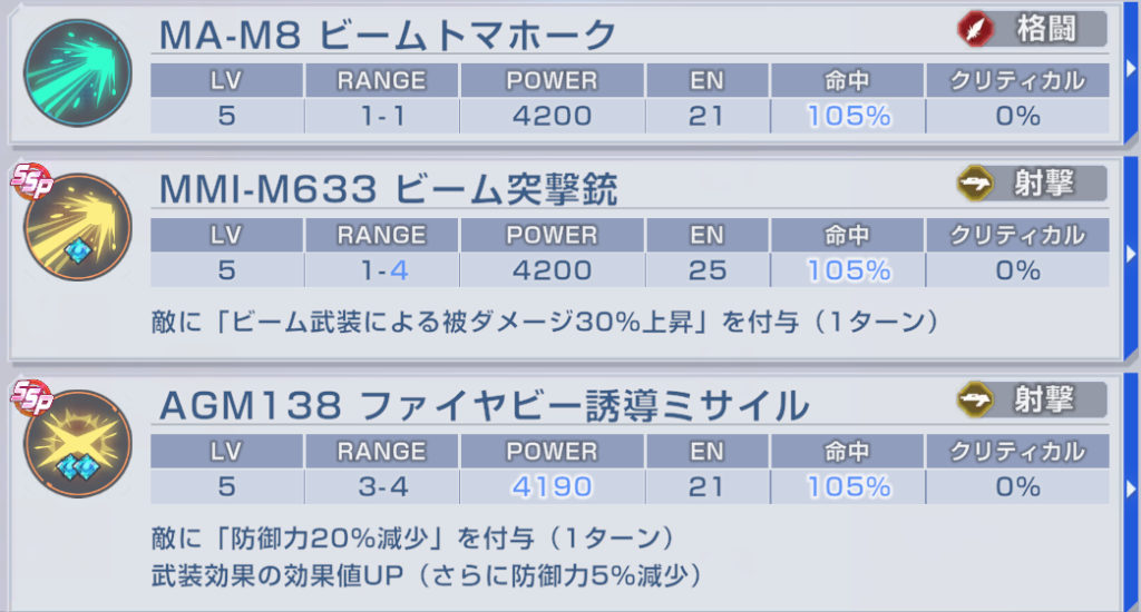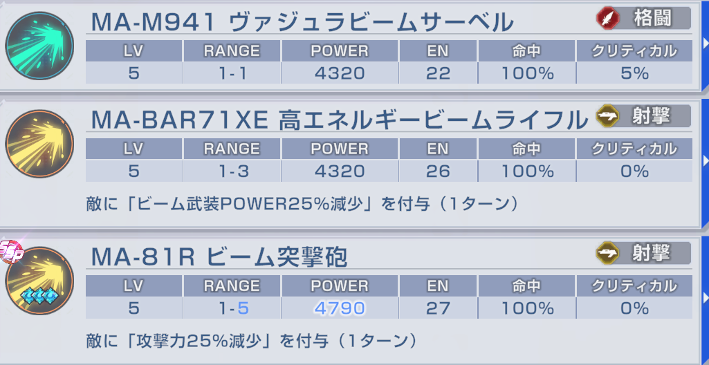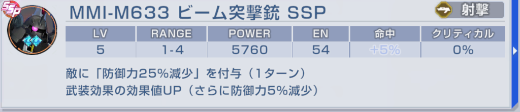 SSP化することでMA-81R ビーム突撃砲の射程が5までアップ、威力も4790までアップ