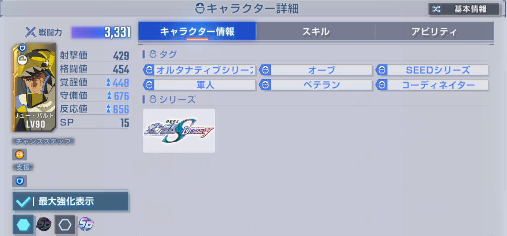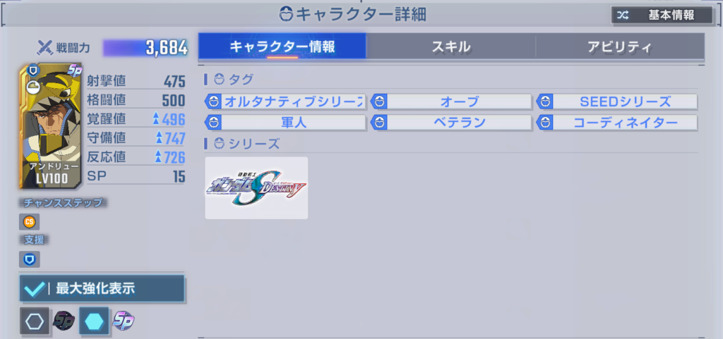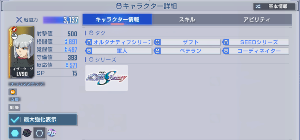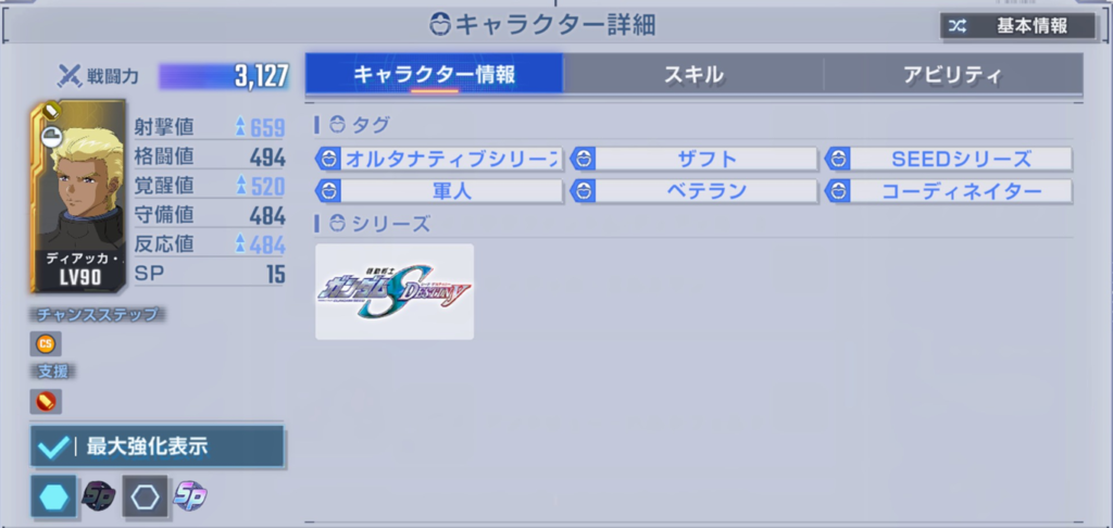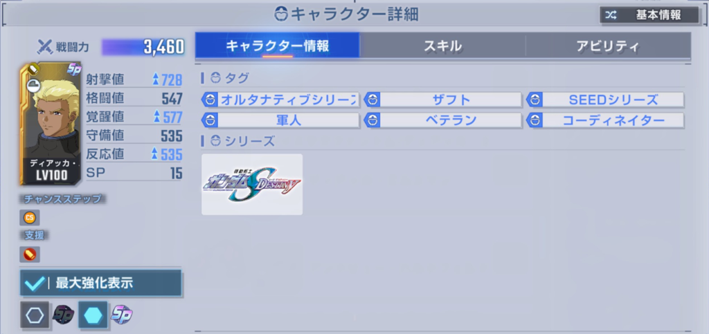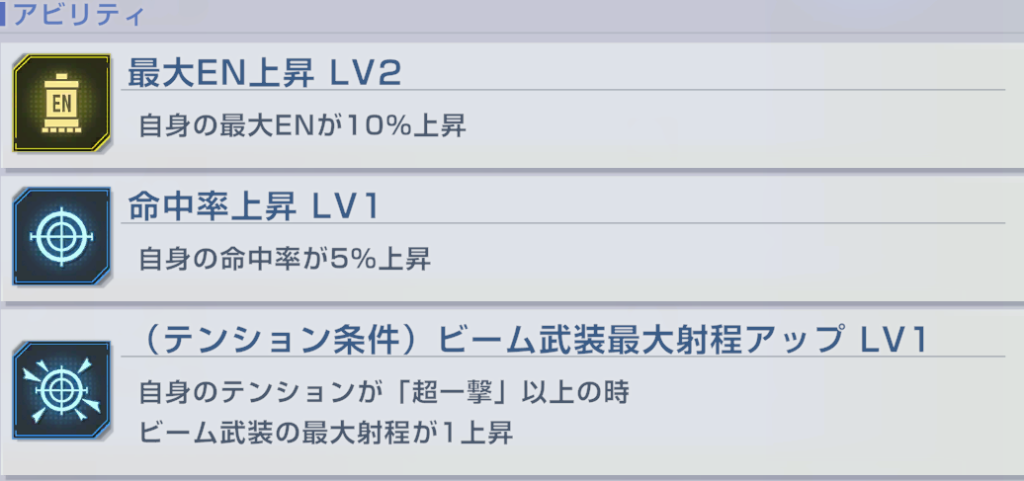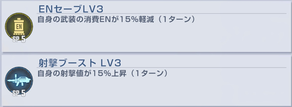 ディアッカのスキル、ENセーブLV3、射撃ブーストLV3