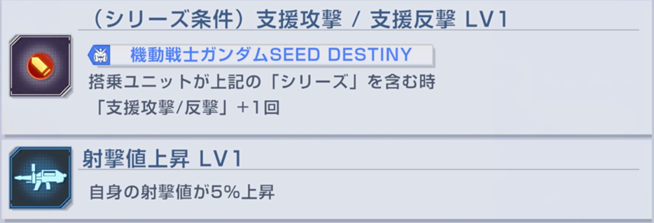 ・シリーズ【SEED DESTINY】のユニットに搭乗時、支援攻撃/反撃+1回