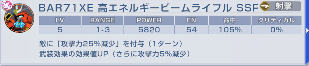 SSP武装はビーム射撃武装のBAR71XE 高エネルギービームライフルSSP