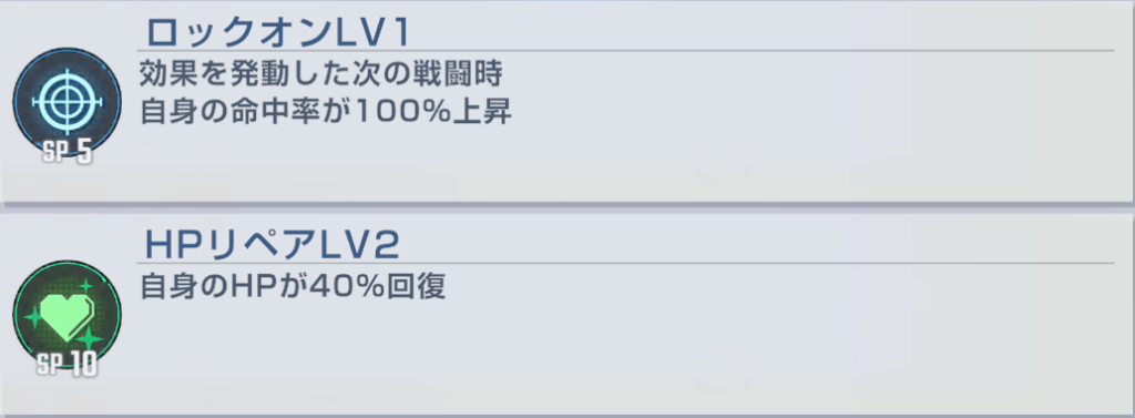 バルドフェルドのキャラスキルはロックオンLV1、HPリペアLV2