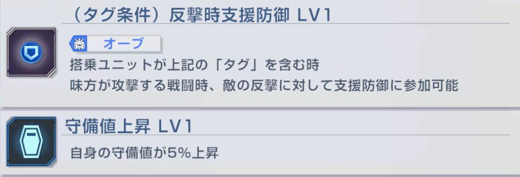 ・【オーブ】タグのユニットに搭乗時、味方攻撃時に敵の反撃に対して支援防御