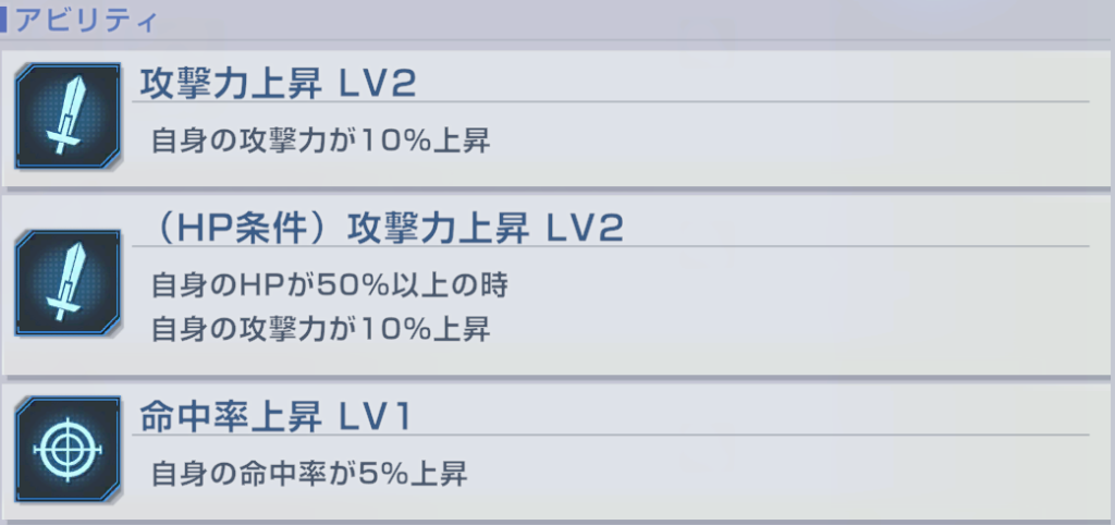 自身のHPが50%以上の時、自身の攻撃力5%アップ