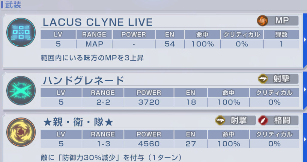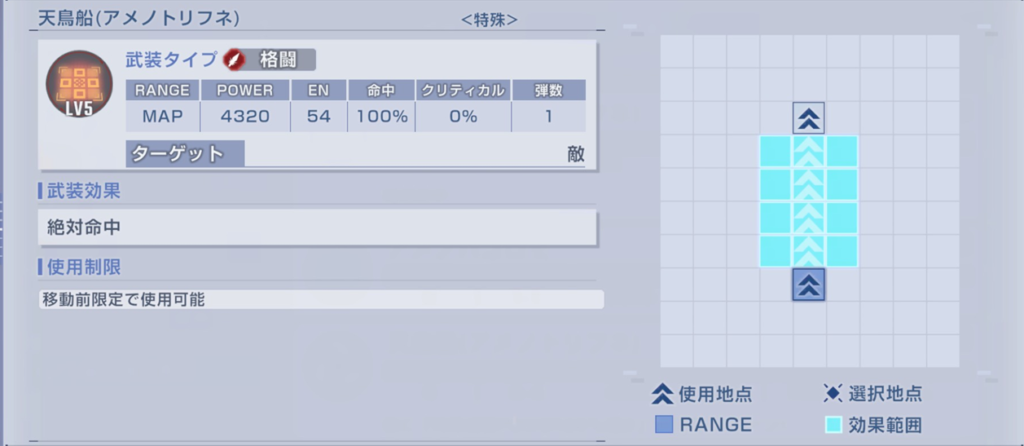 射程2~5、威力5820、消費EN54、クリティカル率20%