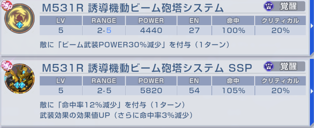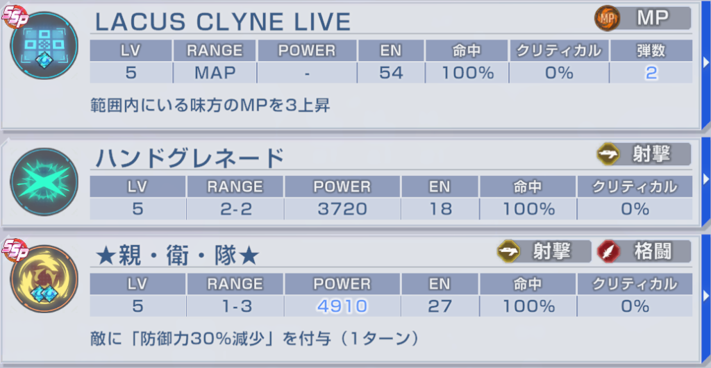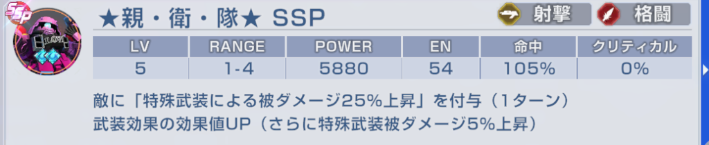 ・射程5の武装を所持、SSP化で2種類のデバフを射程5で使用可能