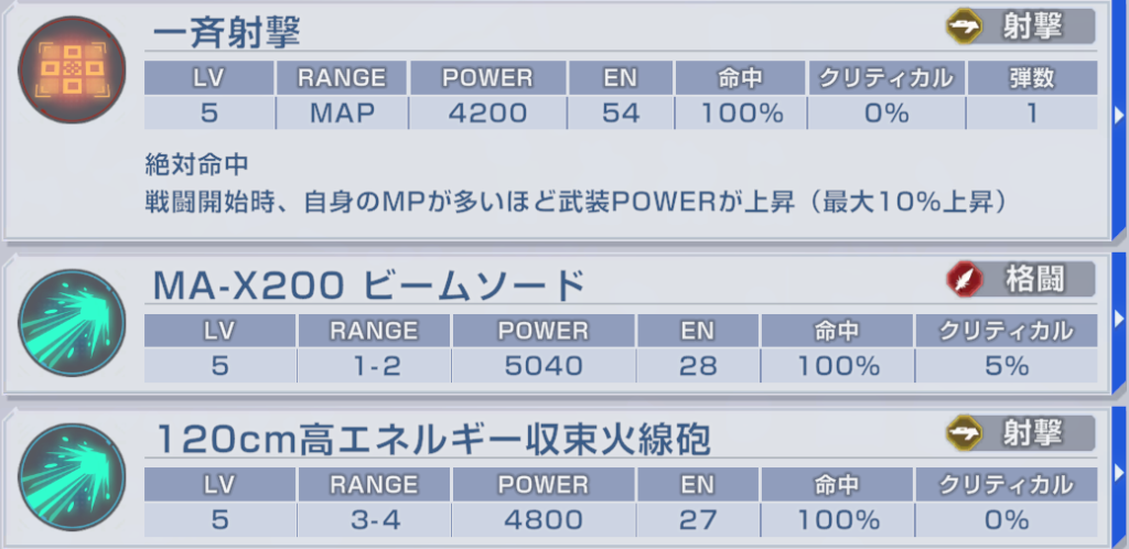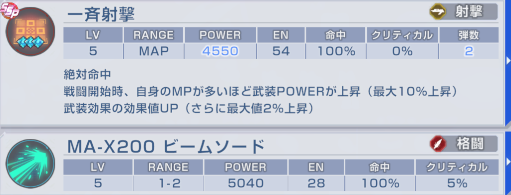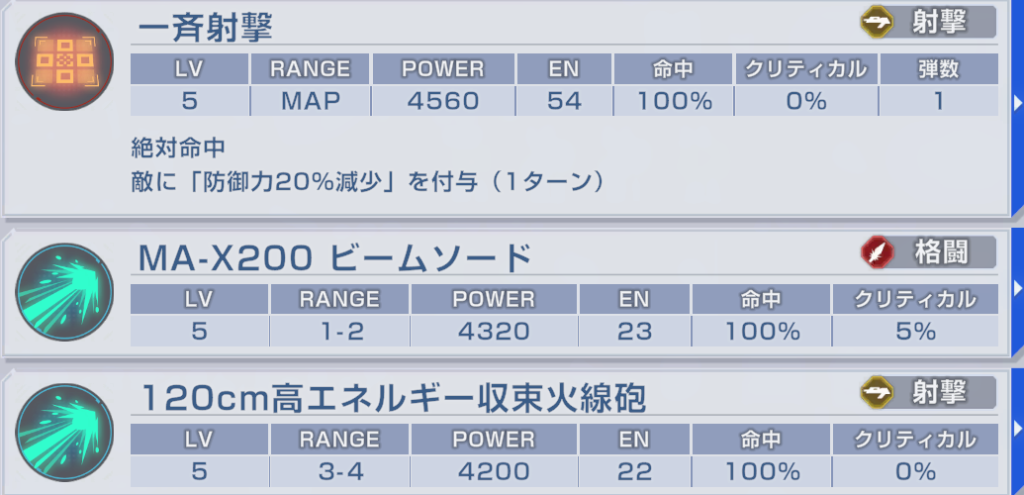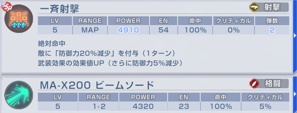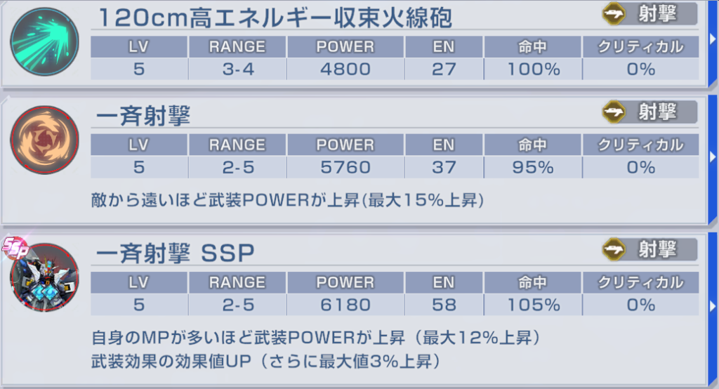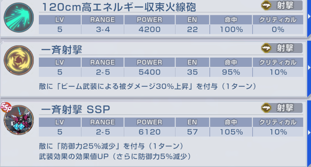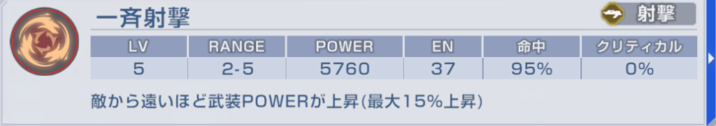 射程2~5、威力6120、消費EN57、クリティカル率10%
