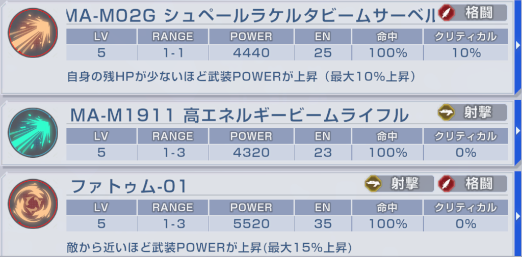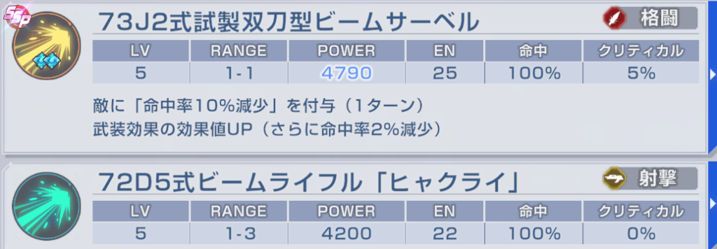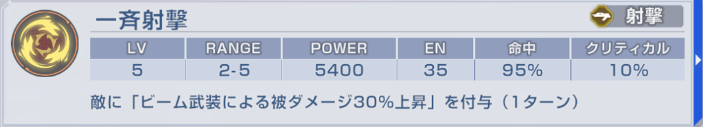 射程2~5、威力5400、消費EN35、クリティカル率10%