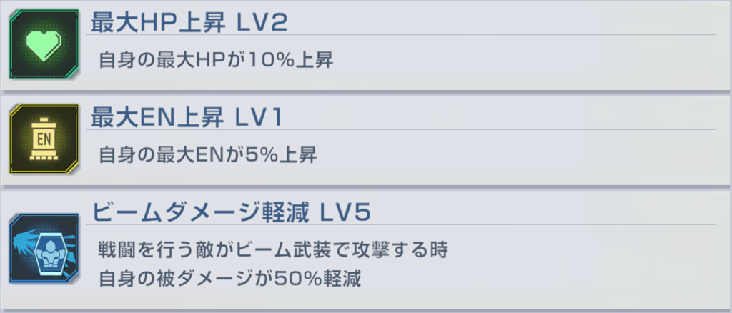・敵の物理、ビーム武装に対して被ダメ〇%軽減