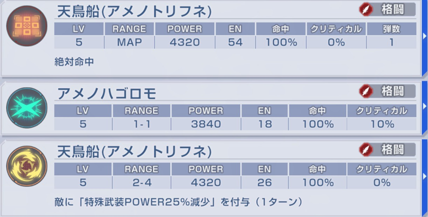ちなみに特殊格闘のアメノトリフネ、特殊射撃のアメノコウリンの射程が2~5にアップ