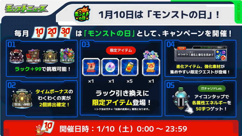 1月10日はモンストの日