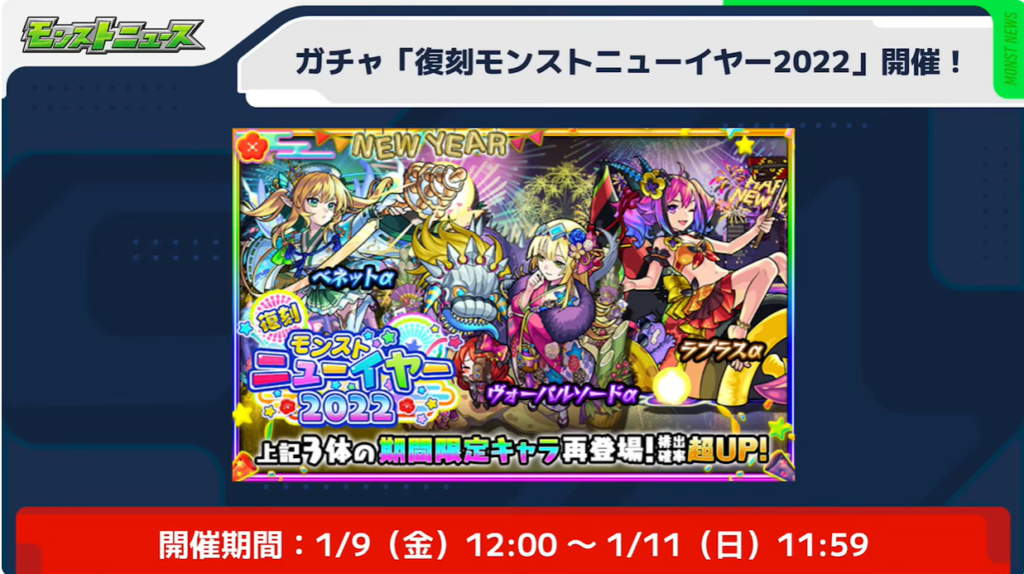 新春モンストα2022のガチャが復刻
