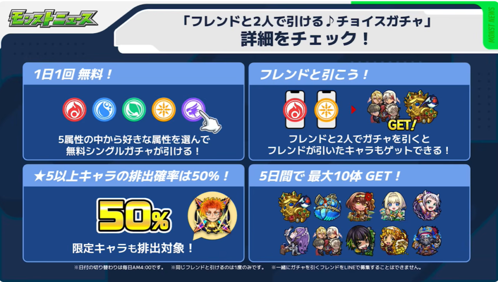 久しぶりにフレンドと引けるチョイスガチャが開催!