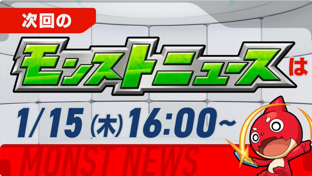 来週のモンストニュースは1/15(木)