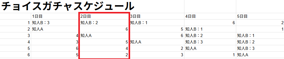 2日目のチョイスガチャはこのような組み合わせで引いてまいります