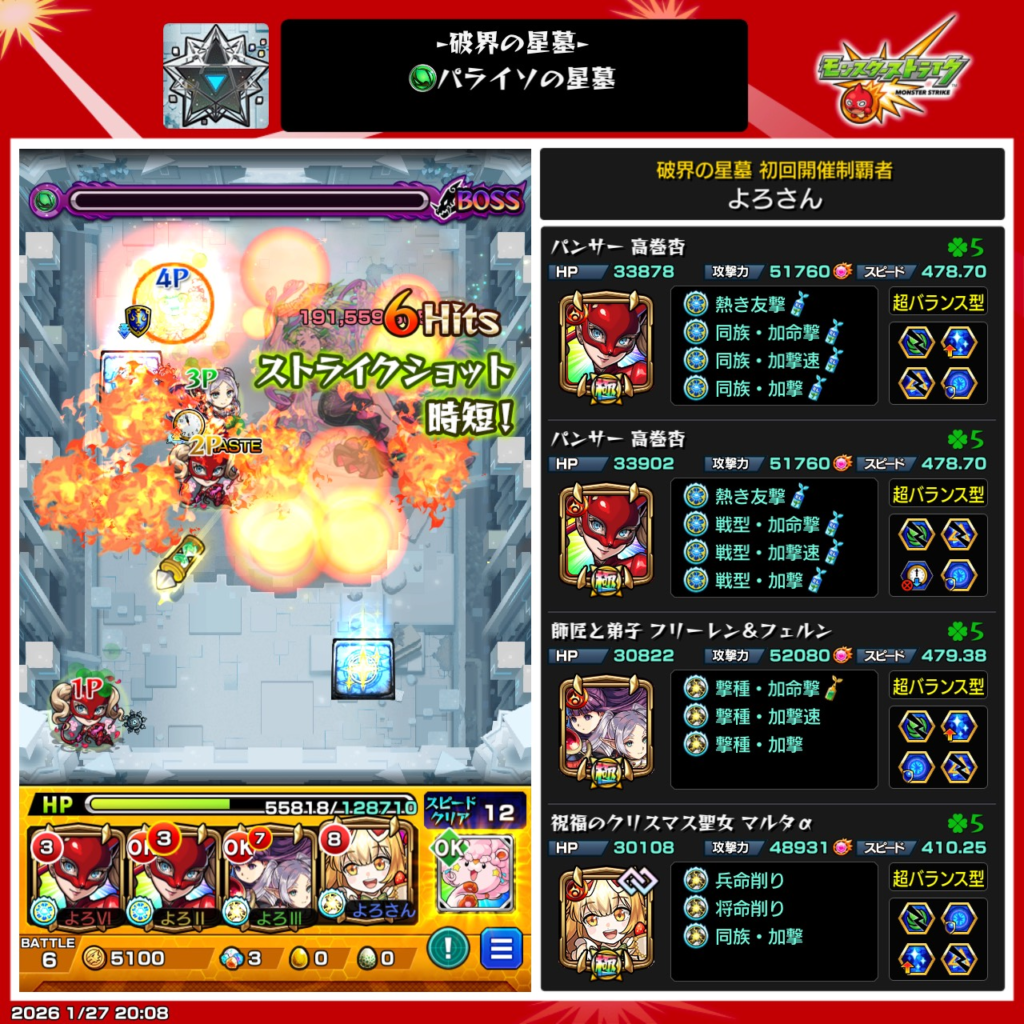 ちなみにこちらが前回の破界の星墓の攻略パーティーでございます