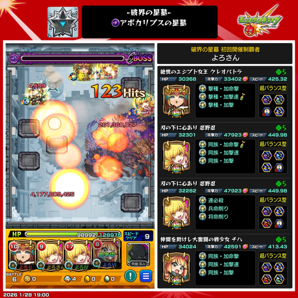 破壊の星墓の攻略編成もちょこちょこ変更が入りました