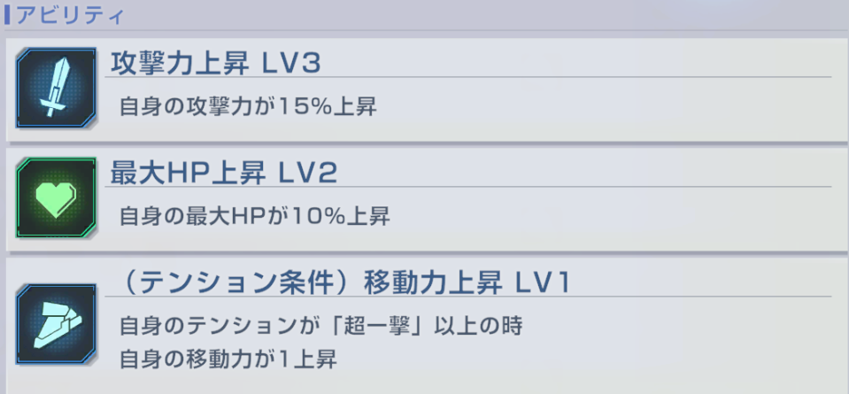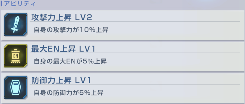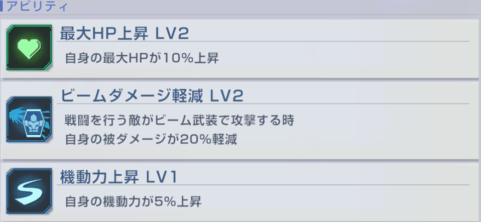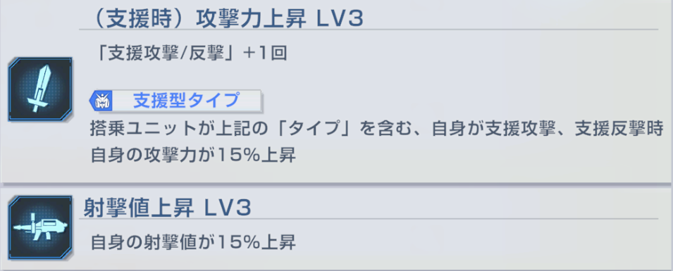 耐久型ユニット搭乗時に支援防御時の防御力15%アップ