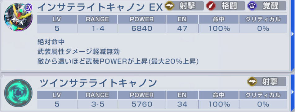 ツインサテライトキャノンなどのマップ兵器を2回使用できるのが良き