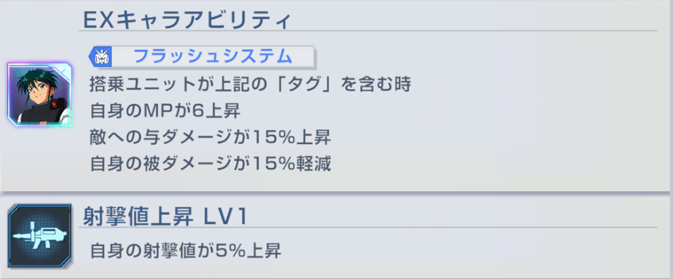 ・【フラッシュシステム】タグユニットに搭乗時、自身のMP6アップ