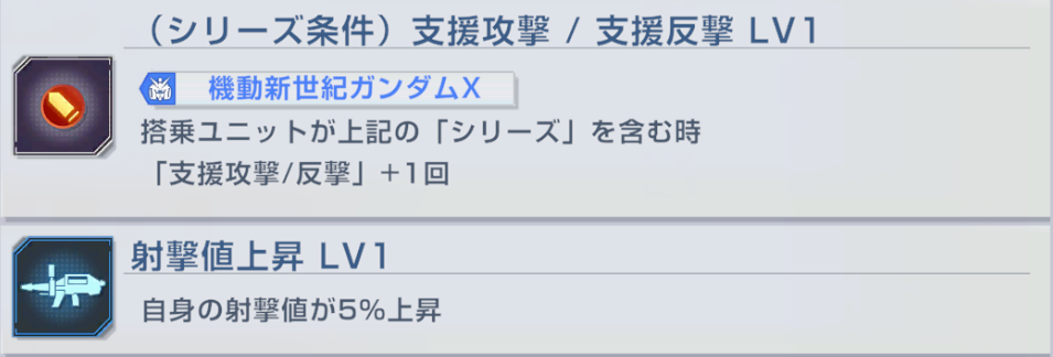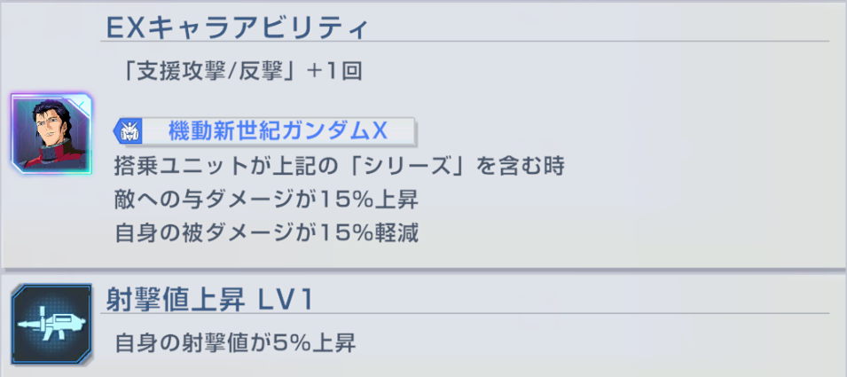 ・ガンダムXのユニットに搭乗時、支援防御+1回