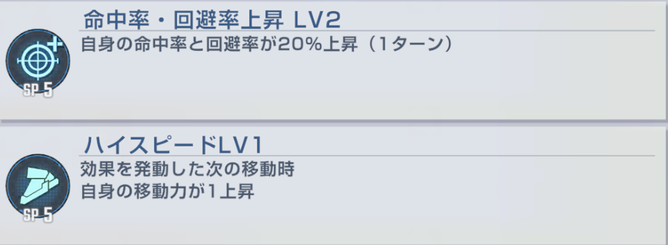 キャラスキルは命中率・回避率上昇LV2、ハイスピードLV1