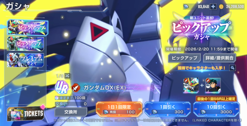 まずはUR ガンダムDX(EX)、タイプは攻撃型