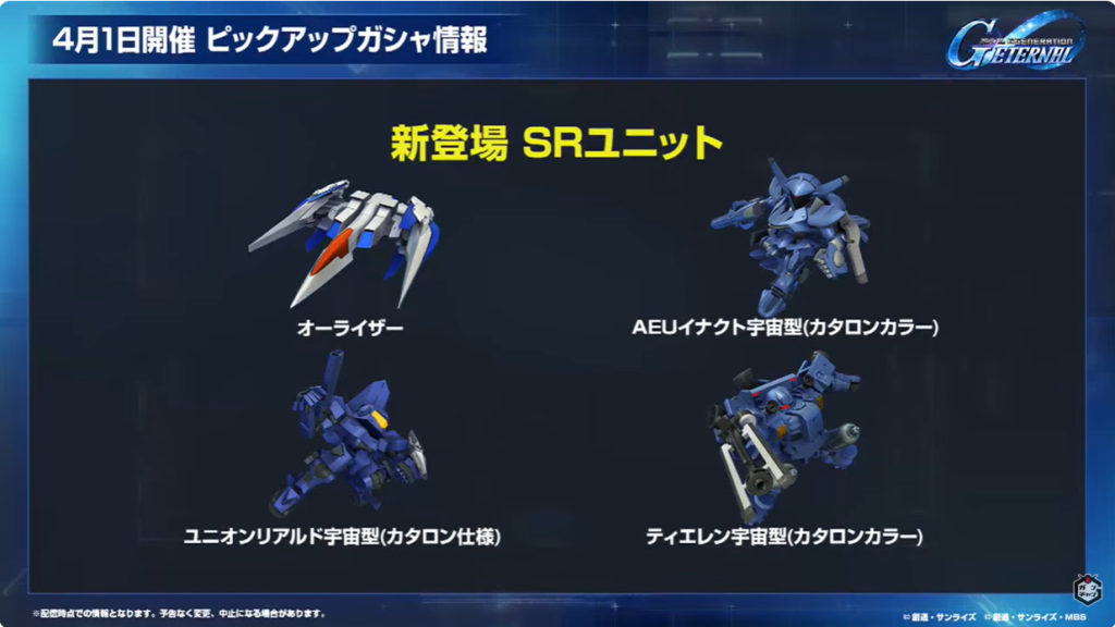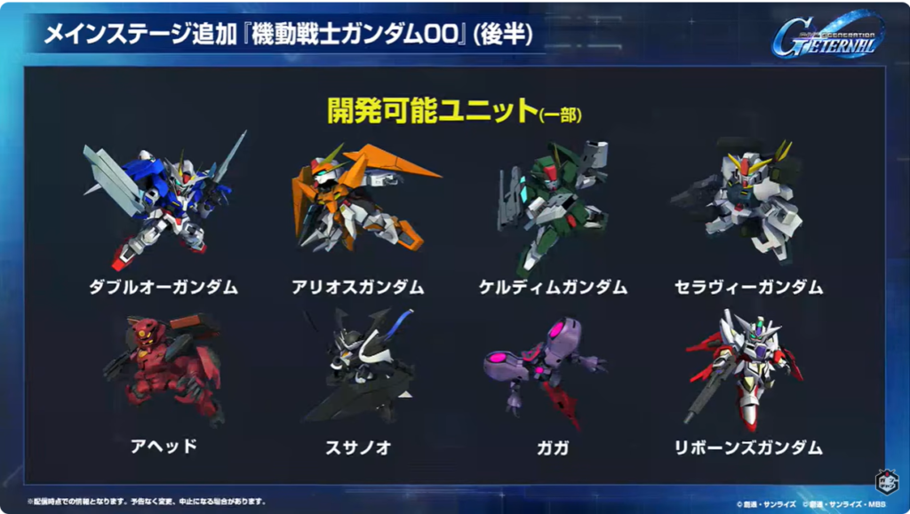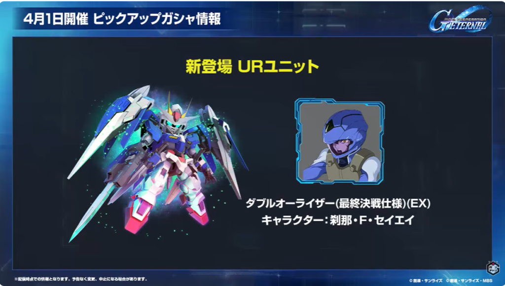 SSRエクシア(TRANS-AM)が入手可能でき、ミッション完遂で完凸可能
