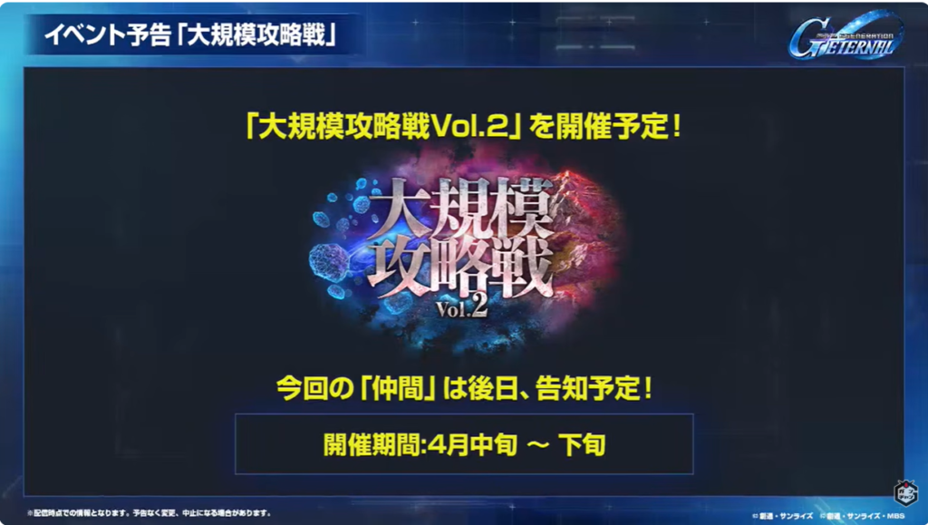 4月中旬頃から大規模攻略戦Vol.2が開催