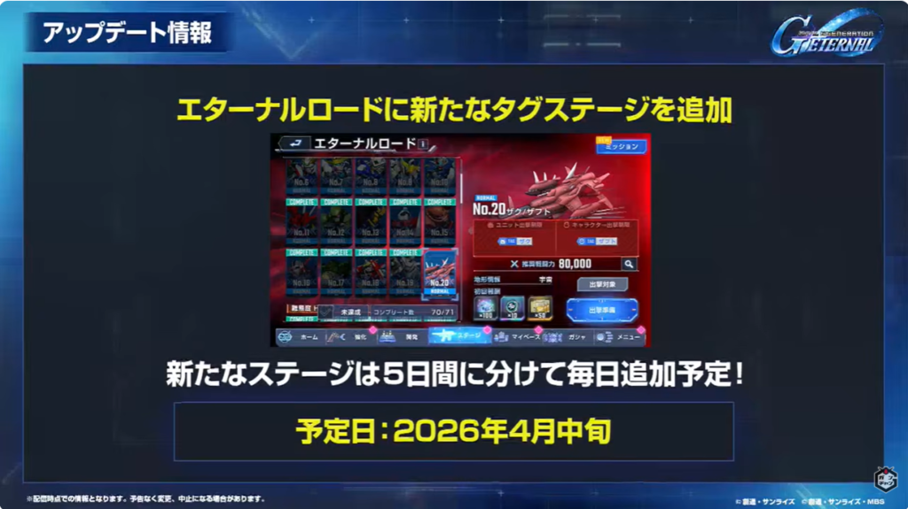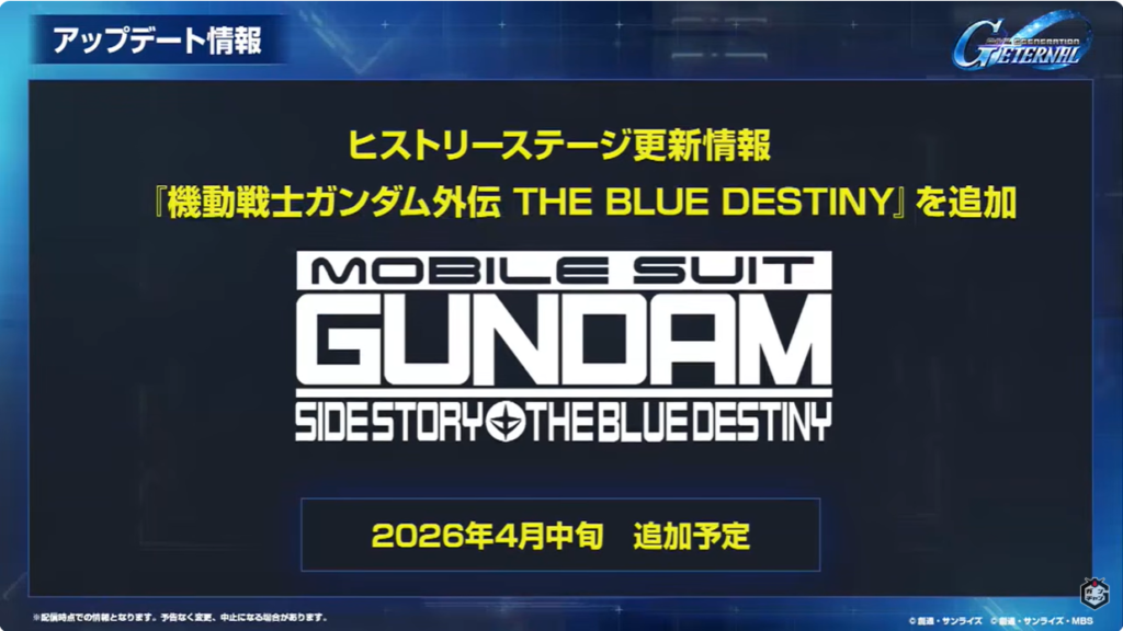 4月中旬頃にブルーディスティニーのイベントがヒストリーステージに追加予定