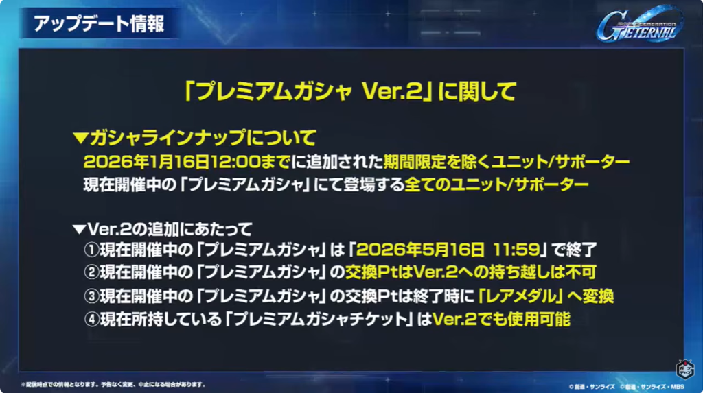 ・交換ポイントはVer.2に持ち越し不可(レアメダルに変換)