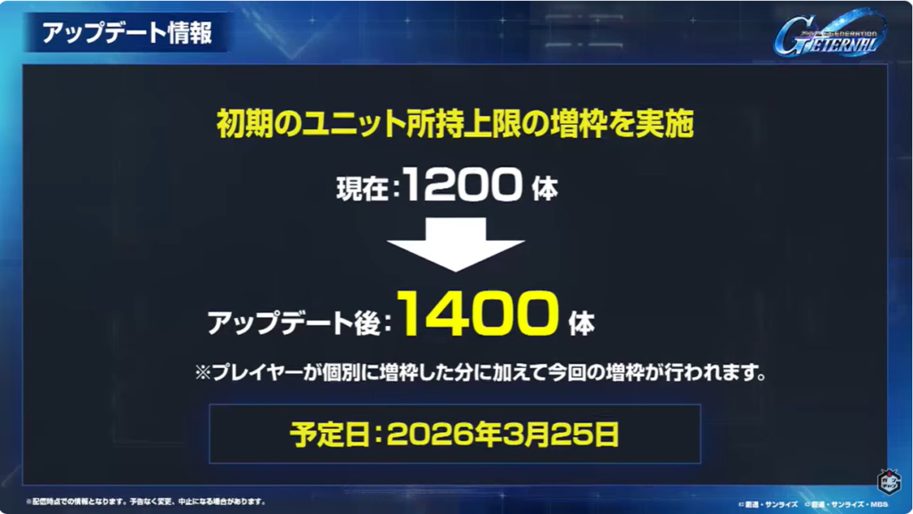 ユニット所持上限が+200されます、予定日は3月25日とのこと
