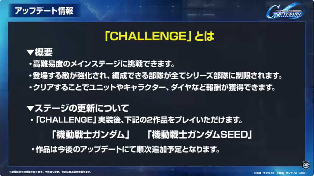 ・手始めに1stと種の2作品にチャレンジモードを追加
