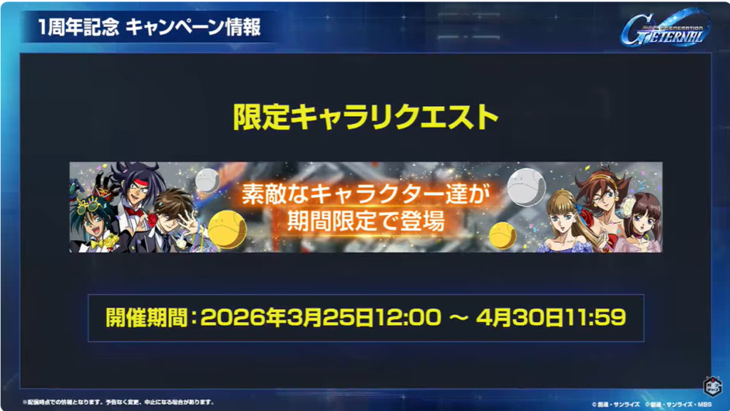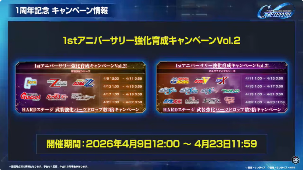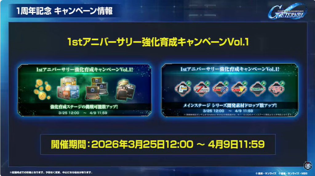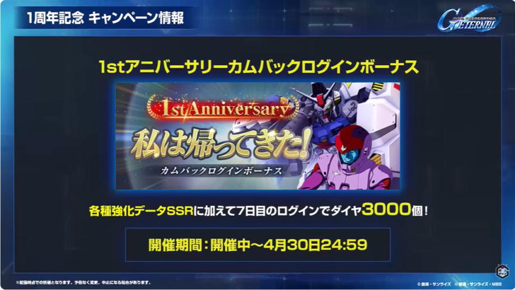 しばらくジージェネエターナルから離れた人に向けてのカムバックキャンペーンも開催中