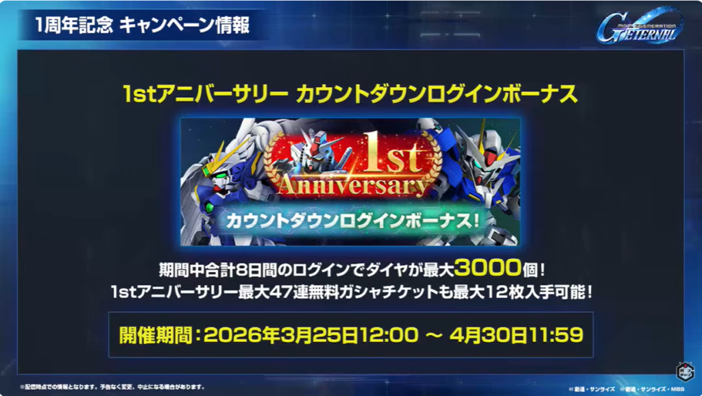 1stアニバ記念で最大47連無料ガシャ(UR2体以上確定)も開催