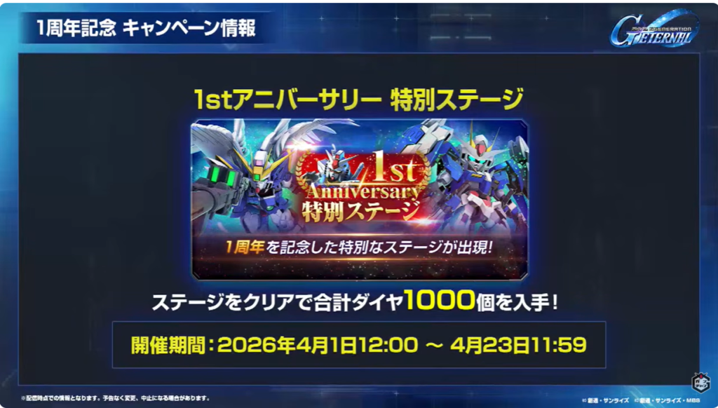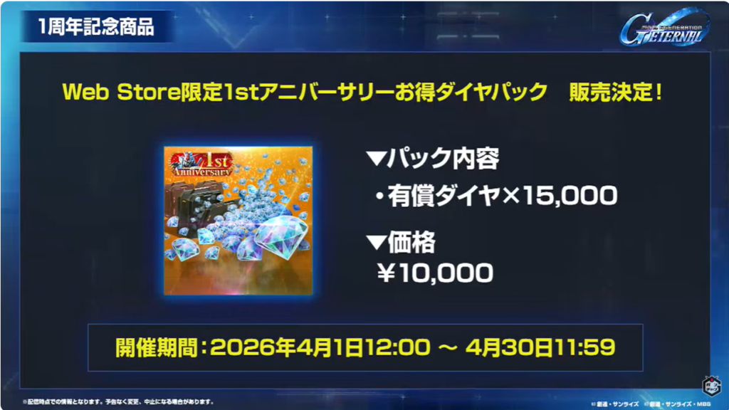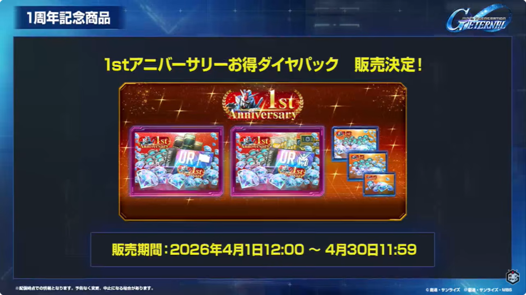 1stアニバ記念のお得ダイヤパックを4月1日から1か月間販売とのこと