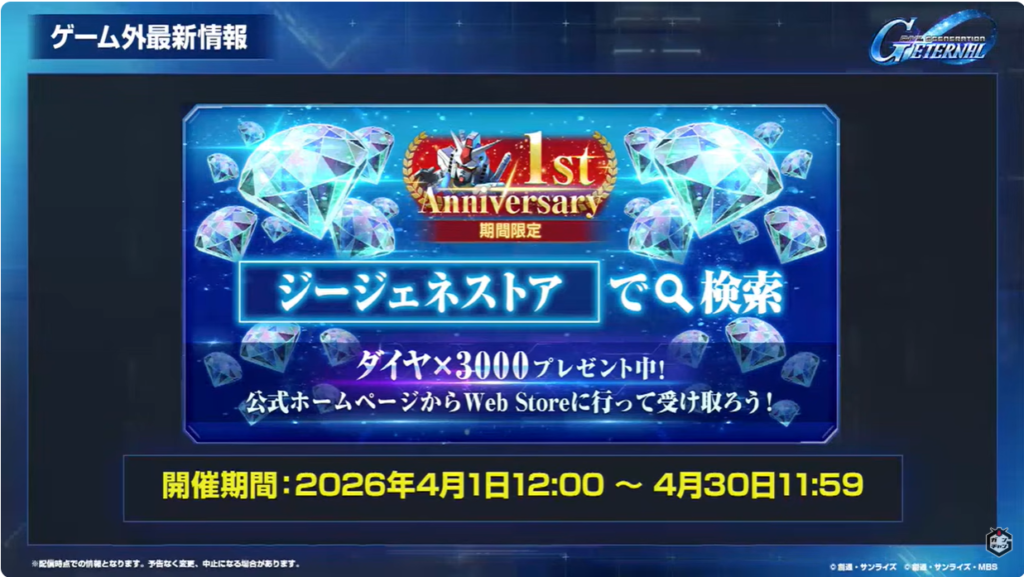 そしてWeb Storeにて4月1日12:00からダイヤ3000個を再度入手可能とのことです