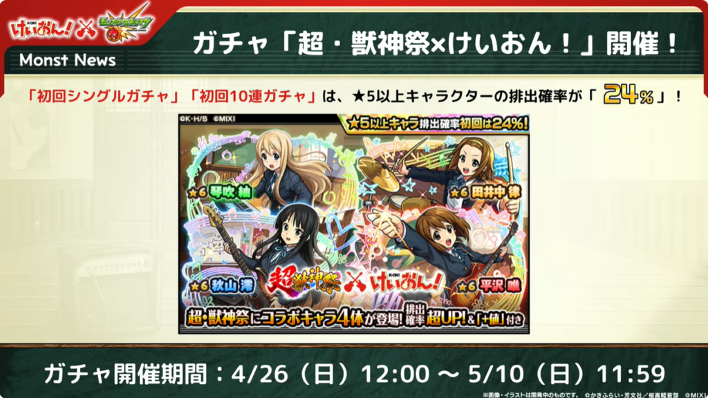 去年の超獣コラボはぼっちざろっくでしたが今年はけいおんと